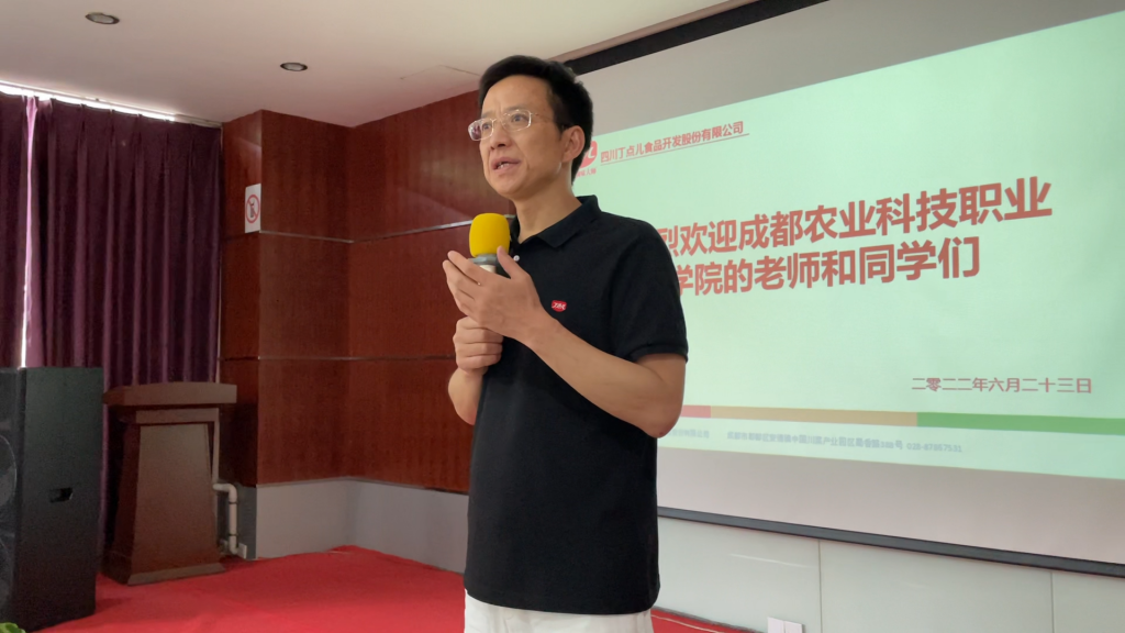 ? ? ? ?為扎實推進產(chǎn)教深度融合,拓寬校企合作深度,盡早讓學(xué)生了解所學(xué)專業(yè)用途,切身了解企業(yè)對人才的需求標(biāo)準(zhǔn)、認(rèn)識技能與就業(yè)能力的重要性,6月23日上午,成都農(nóng)業(yè)科技職業(yè)學(xué)院三位老師帶領(lǐng)一百名學(xué)生來到丁點兒股份參觀交流、探索學(xué)習(xí)。丁點兒股份企業(yè)技術(shù)中心常務(wù)副主任羅強祖、人資行政部部長陳霞等相關(guān)領(lǐng)導(dǎo)參與迎接并向來訪師生表示熱烈的歡迎。