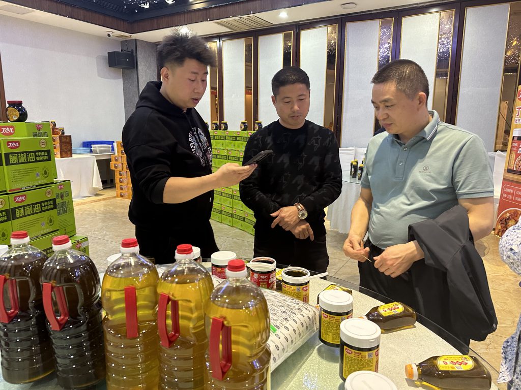 品嘗過用丁點兒藤椒油、干鍋醬、椒麻雞汁、金湯酸菜醬等特色川調制作的藤椒雞片、干鍋鮑魚、虎椒拌鮮筍等創新菜品后,大家對丁點兒產品的味型、品質贊不絕口,紛紛前往產品展示區咨詢了解。