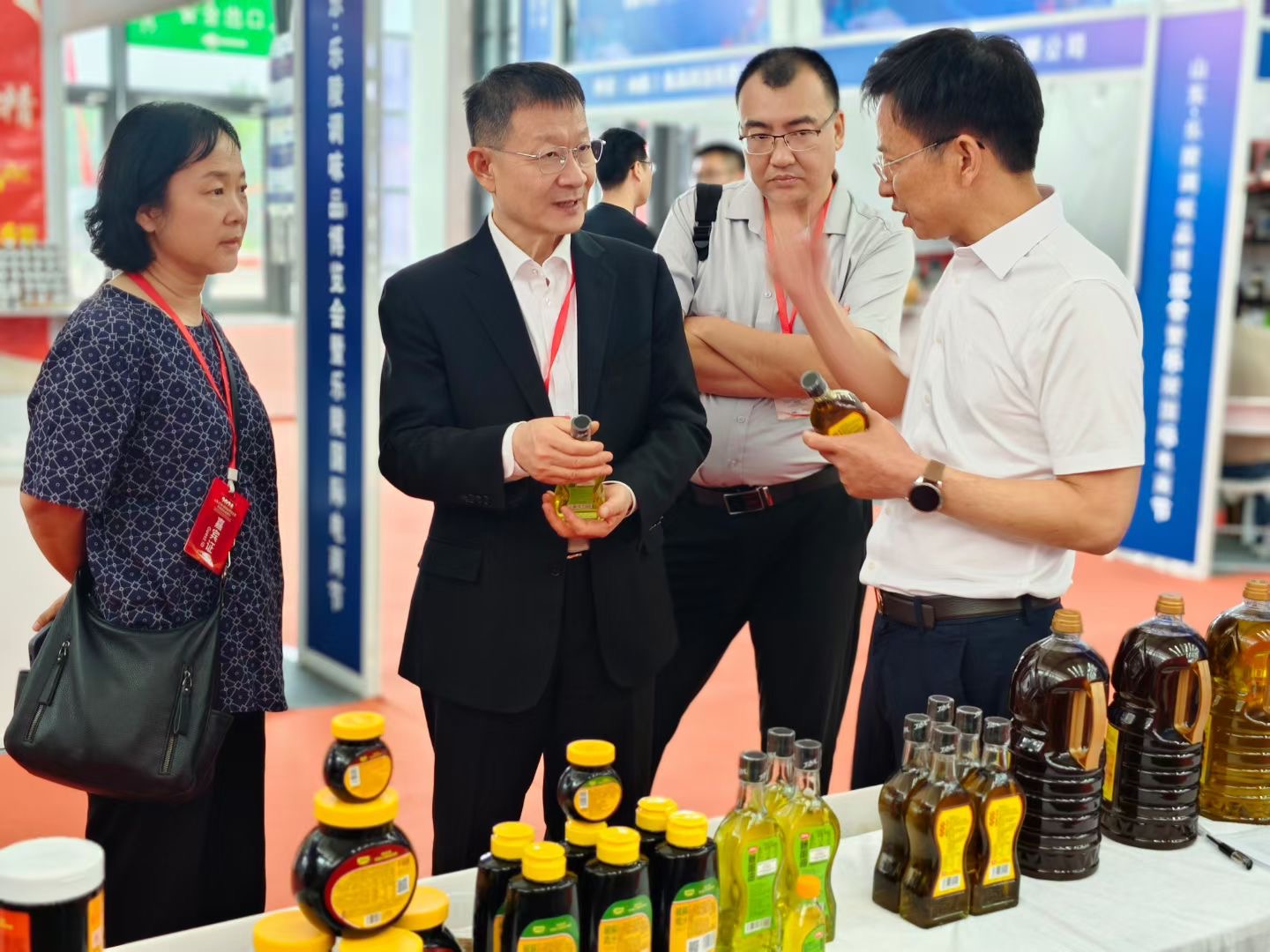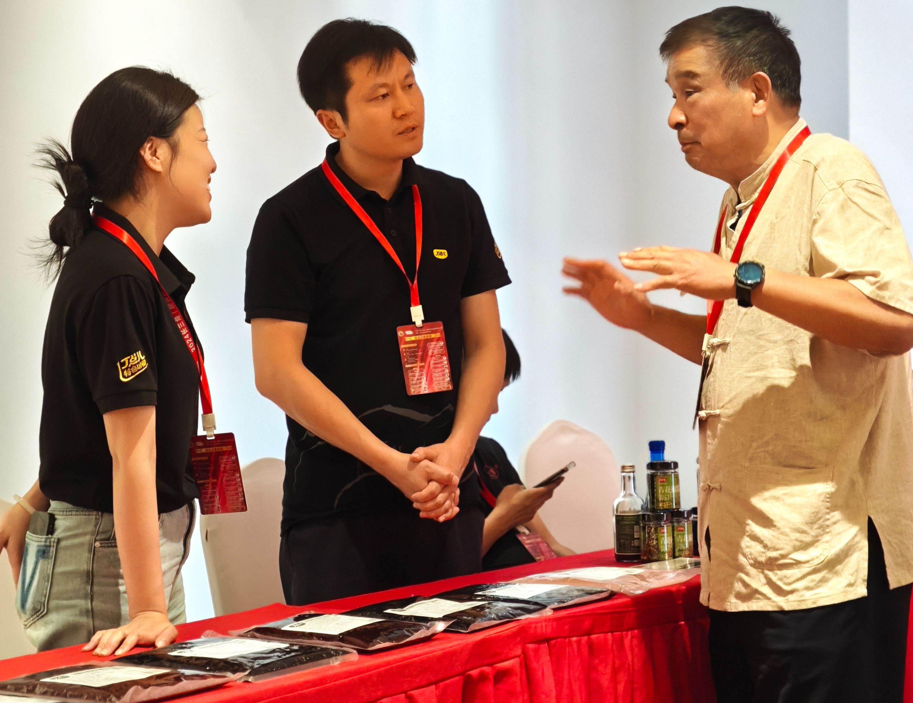 在山東(樂陵)調味品博覽會丁點兒展位現場,丁點兒食品任康董事長親自接待了中國食品土畜進出口商會會長曹德榮先生,并詳細分享了丁點兒藤椒油、麻得倒純萃花椒油等產品的特色與亮點。曹德榮先生對丁點兒高品質特色川調產品表示了高度肯定,并希望雙方能夠緊密合作,共同推動調味品行業高質量發展。