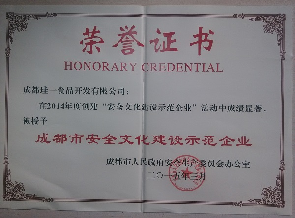 2015成都市安全文化示范企業證書