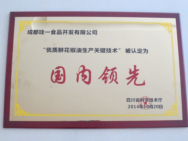 花椒油關鍵技術科技進步獎