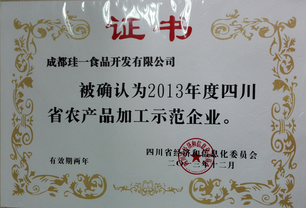農產品加工示范企業證書
