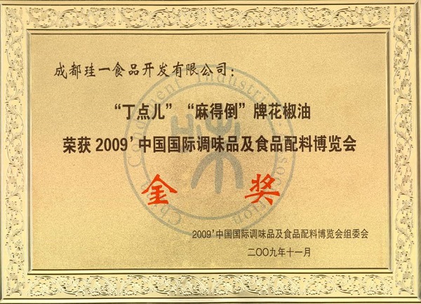 中國國際調味品及食品配料博覽會金獎