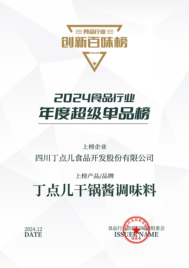 丁點兒干鍋醬獲“2024食品行業年度超級單品”獎